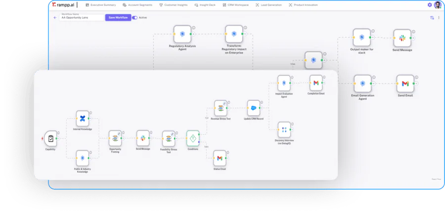 Execute Enterprise Journeys 40% faster. Rampp.ai coordinates decisions, automates handoffs, and actions, across enterprises every team, system, and context