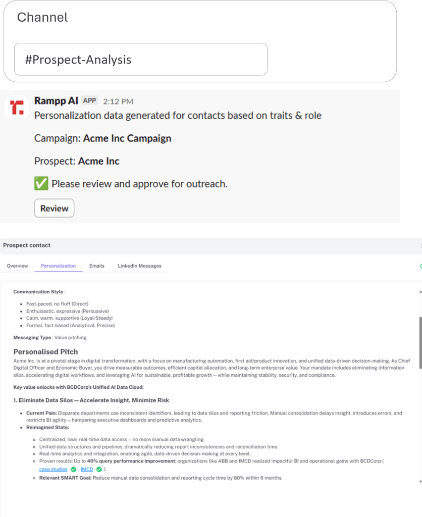 Make every message feel handcrafted. Rampp.ai analyzes enterprise signals, competitor shifts, and prospect triggers to build hyper-personalized value propositions that get noticed, not ignored.